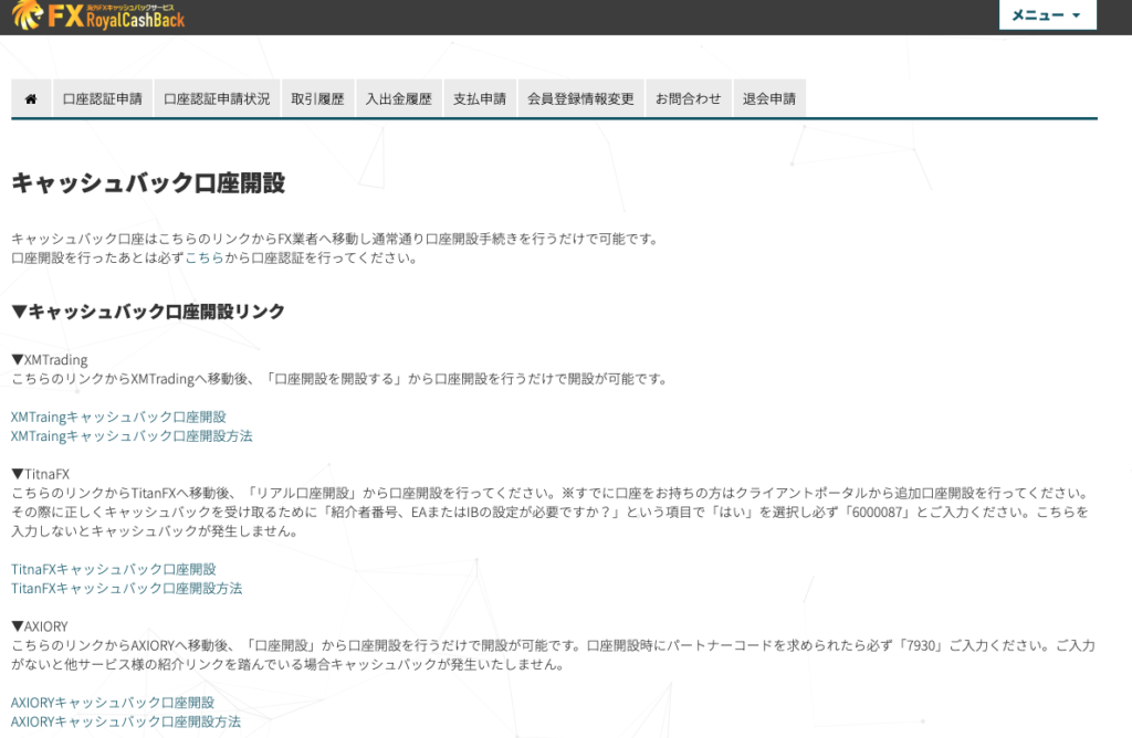 - ロイヤルキャッシュバック=取引に応じてお金が返ってくるキャッシュバックサイト