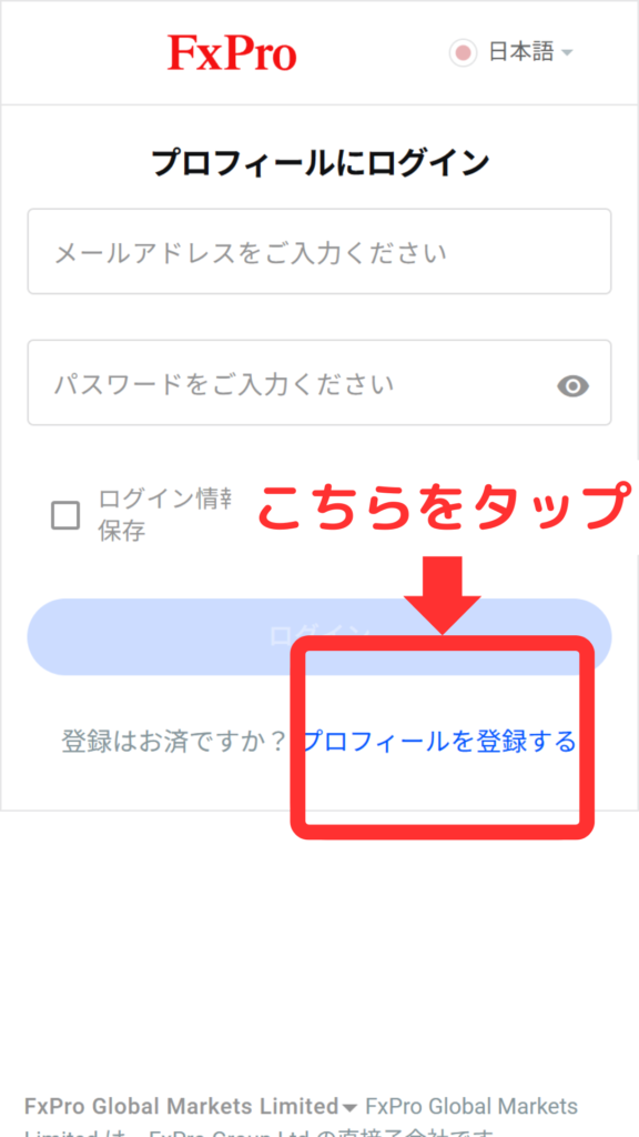 まずは、下記のリンクからFxPro(エフエックスプロ)のアカウント開設ページに遷移します。