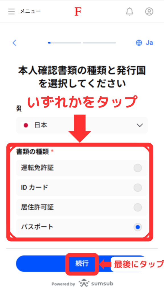次に住所確認書類を提出しますので、ホーム画面より下記手順の通り進んでください。