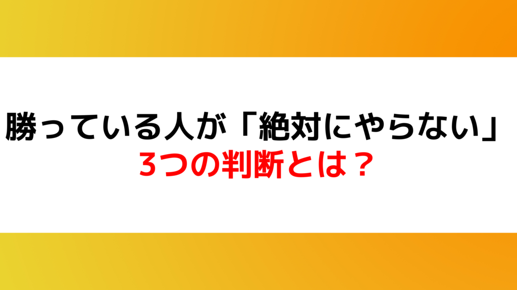 勝つためには「戦わない勇気」も重要です。冷静な判断力が資金を守ります。