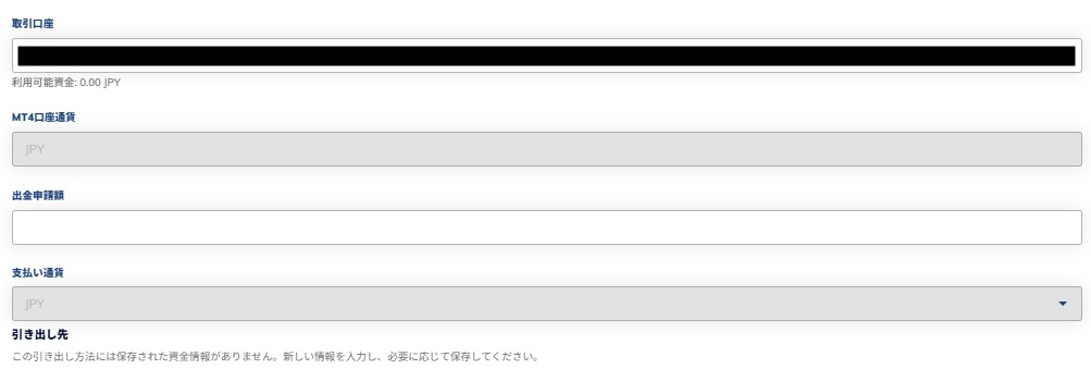 | 支払い通貨 | 出金したい通貨を選択する 銀行送金は「JPY(日本円)」が自動選択 |