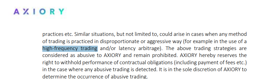 AXIORY secara eksplisit menyatakan di laman web rasminya bahawa ia "mengalu-alukan scalping."