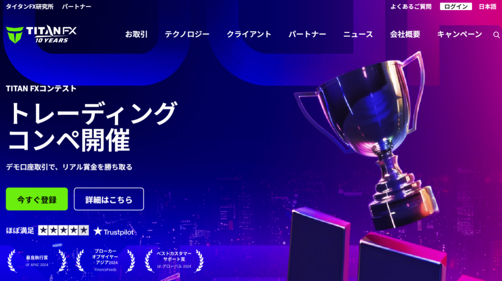 Tempat ke-3: Titan FX![]() | Kira-kira 70 jenis | Keseimbangan kelajuan pelaksanaan dan spread yang sangat baik. Persekitaran perdagangan gred profesional |