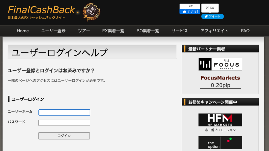 - ファイナルキャッシュバック公式サイトでユーザー登録